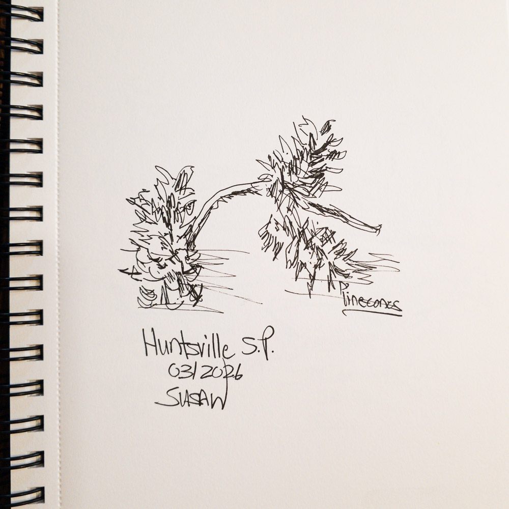 The sketchbook is one of the anchoring practices of this whole journey. Sketching forces me to slow down and truly look at where I am — which is both a meditative practice and a creative one. The sketches from all 88 parks will eventually illustrate a book I am writing about this journey, so each drawing is also building something larger.